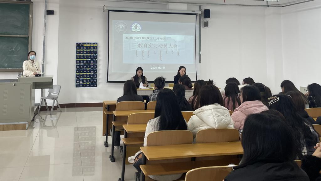 3月11日下午,公司在崇文楼B401教室举行了毕业生实习动员大会暨就业工作推进会。公司党总支书记格根塔娜、副书记孔春艳、副经理小花、实验实训中心主任乌云斯琴及2024届毕业生参会。
