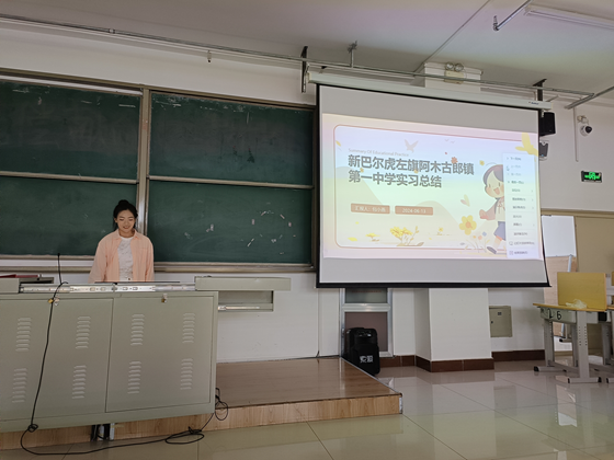 本次实习历时两个多月,共有87名员工参与,他们分别在呼伦贝尔市新巴尔虎右旗、左旗、陈巴尔虎旗、鄂温克自治旗的中小学以及兴安盟科右前旗和科右中旗中学等11个实习基地进行了专业实践。各实习公司的代表们借助精心准备的视频和照片等多种媒介,回顾并总结了他们的实习生涯。他们不仅深刻反思了听课与讲课的教学实践,还分享了作为班主任在日常管理工作中的真实体验。此外,他们还细致地讲述了与员工和同事相处的点滴感悟,以及参与各类校园活动所获得的宝贵心得。汇报内容不仅丰富多元,而且展现了实习生们在教育实践中所取得的成长与收获。同学们纷纷表示,通过两个多月的实习,他们学会了如何组织班级活动,并能独立开展教学活动,收获颇丰。