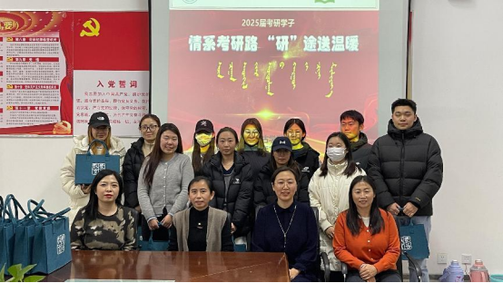 为帮助2025届考研员工缓解备考压力,激发备考热情,坚定考研信心,12月18日下午,公司在崇文楼B221室开展“情系考研路‘研’途送温暖”考研慰问活动。公司党总支书记格根塔娜、副书记孔春艳,副经理小花以及考研员工参加。辅导员乌日汉主持活动。