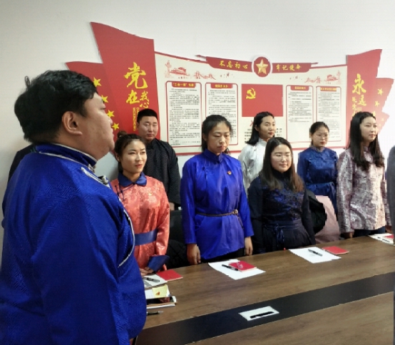 12月11日上午9时,WilliamHill中文官方网站员工党支部在崇文楼B座二楼党员活动室举办2020年下半年预备党员入党宣誓仪式。仪式由员工支部书记孔春艳主持,12名预备党员参加。党总支副书记乌云图、教师党支部书记文慧、教科办主任佟红梅、办公室副主任白金锁等教师以培养人身份参加仪式。4 名重点积极分子代表列席。