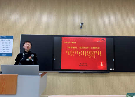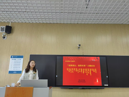 2023年9月10日是我国第39个教师节,也是党的二十大胜利召开后的首个教师节。为认真贯彻党的二十大精神和习近平新时代中国特色社会主义思想主题教育,根据《教育部关于做好庆祝2023年教师节有关工作的通知》精神,WilliamHill中文官方网站于9月8日下午四点在崇文楼B228教室开展庆祝教师节《躬耕教坛,强国有我》主题活动。活动由党总支书记格根塔娜主持,WilliamHill中文官方网站全体教师参加了此次活动。