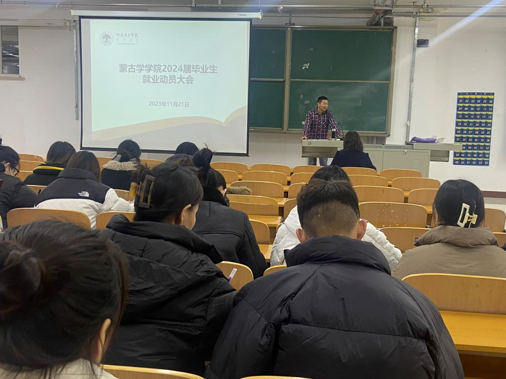 为切实做好毕业生就业指导工作,引导毕业生树立正确的择业观、就业观,11月21日晚,公司在崇文楼B401教室召开2024届毕业生就业动员大会。公司党总支书记格根塔娜、团学办主任额尔布乐图以及2024届在校毕业生共80余人参加会议。