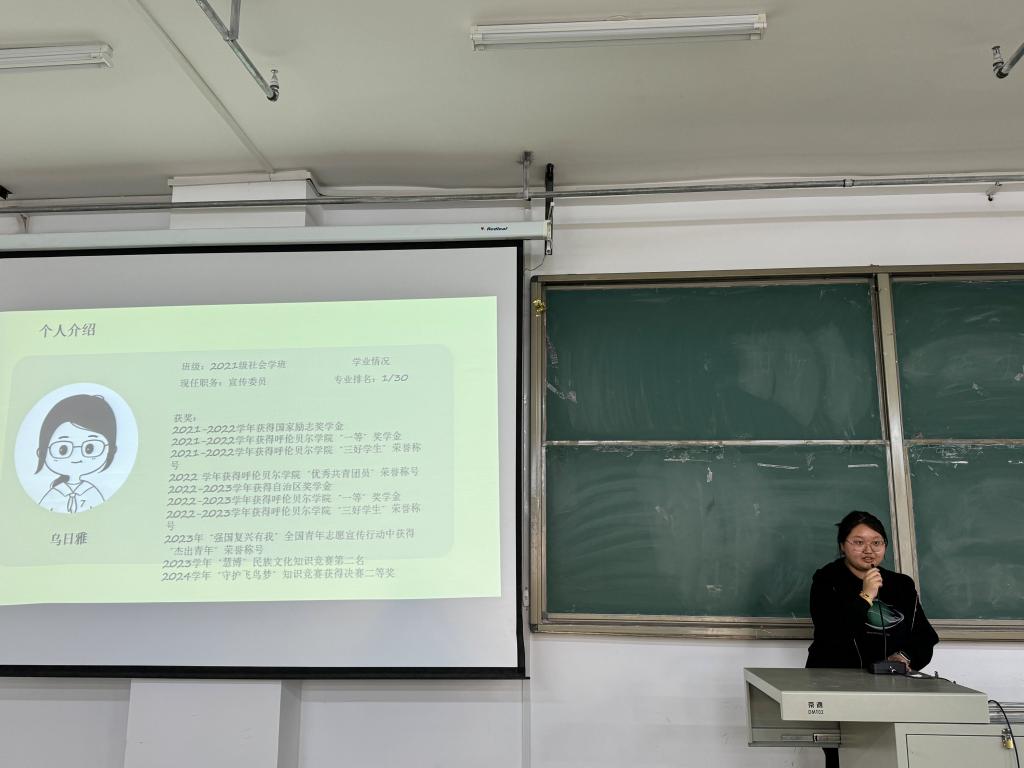 为营造良好的学习氛围,引导员工树立奋进目标,5月17日晚,公司在崇文楼B201教室举办了优秀学子学习经验分享会。2021级语言文学一班苏日古嘎、二班美丽,2021级社会学班乌日雅等三位员工为大家分享学习经验。公司党总书记格根塔娜、团学办相关老师及大一大二全体员工参加了会议。