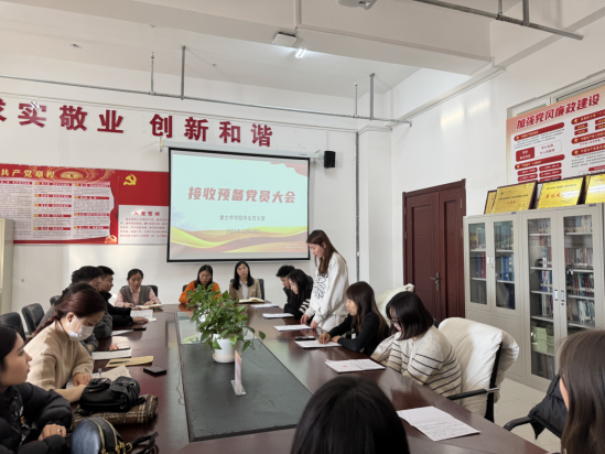 会上,孔春艳介绍了本次会议的主要议程和重要性,强调了发展党员工作是党的基层组织建设的重要组成部分,对于保持党的先进性和纯洁性具有重要意义。随后,5名入党申请人向大会宣读了自己的入党志愿书,深情表达了自己对党的认识、入党动机以及对未来的决心和展望。接着,入党介绍人分别就5名同学的政治表现、工作学习情况等向大会作了详细介绍,并对其进行了客观公正的评价,认为该5名同学已具备成为一名共产党员的基本条件。在充分听取了5名入党申请人的陈述和入党介绍人的意见后,大会进入了讨论和表决环节。与会党员纷纷发言,对5名入党申请人的表现给予了肯定,同时也提出了希望和建议。大会以举手表决的方式,一致同意接收胡斯楞等5名同学为中共预备党员。大会最后,孔春艳对胡斯楞等5名同学表示祝贺,并勉励他们在今后的学习和生活中,要继续加强理论学习,不断提高政治觉悟,以更加饱满的热情投身到党的各项事业中去,为党的事业贡献自己的力量。