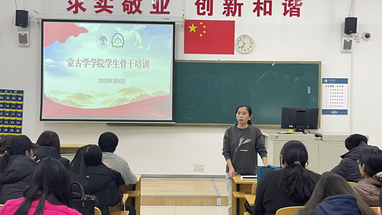为进一步提升员工干部的综合素质与组织管理能力,加强员工干部队伍建设,3月6日晚,公司在崇文楼B209教室开展了员工骨干培训座谈会。公司党总支副书记孔春艳及员工会成员、青年志愿者协会、班级干部、团干部等80余名员工骨干参加,公司团学办主任额尔布乐图主持会议。