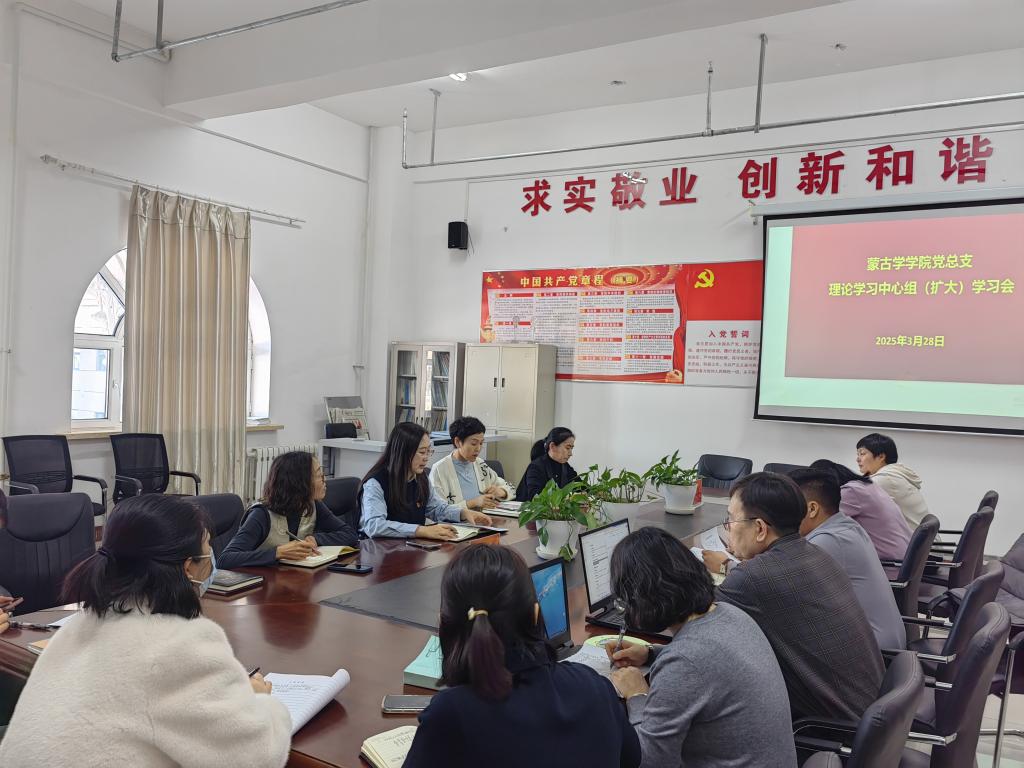 3月28日下午,WilliamHill中文官方网站党总支理论学习中心组(扩大)在崇文楼B221会议室召开专题学习会议,传达学习习近平总书记重要讲话精神和全国两会精神。公司党总支理论学习中心组成员、全体教职工参加集中学习。会议由公司党总支书记格根塔娜主持。