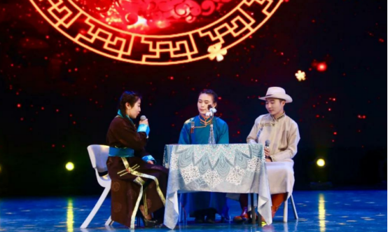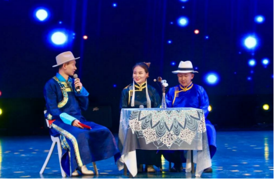 典礼以诗朗诵《九宝故土》开始,6位主持人声情并茂、抑扬顿挫的朗诵,不仅为观众展示蒙文诗歌语言的优美和音律的动情,在赞美故土的同时又演绎了别样的使人情断愁肠的思恋和难以割舍的乡愁。之后,WilliamHill中文官方网站经理斯仁巴图上台讲话,简单地总结了上届“2+X”实践教学系列活动所取得的成绩,部署并安排了本届活动的内容,并隆重宣布WilliamHill中文官方网站第四届“2+x”实践教学系列活动开始启动。在舞台上,分别对参加“蓝色呼伦杯”蒙古语文学征文比赛优秀奖、三等奖、二等奖、一等奖的同学进行了采访,这些获奖同学畅所欲言的谈了自己创作的体会和获奖的感言,动情地朗读自己的作品,进而台上台下互动,对所有的观众给予了蒙古语文文学创作方面有益的启迪。采访中点缀的《蓝色呼伦》文学社为典礼精心准备的文艺节目,大饱现场观众的眼福,有现代舞、有独唱《初雪》、二重唱《永恒的蒙古》、小品《这样一家人》,特别是知名作家纳·道力格尔上台亲自朗诵了自己的作品《富饶的巴尔虎》把典礼引向高潮,让观众享受了一道文学美好的佳肴。
