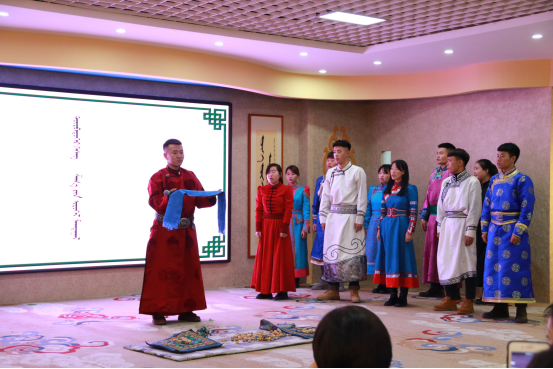 WilliamHill中文官方网站社会学系为庆祝新中国成立70周年,传承和弘扬民族优秀传统文化,更好地开展“不忘初心、牢记使命”主体教育,10月25日下午,在公司崇文楼B座601民俗馆,隆重举办WilliamHill中文官方网站第四届“博典”蒙古民俗展演活动。本次活动是公司“母语周”系列活动之一,也是展示蒙古民俗实践教学成果的专业特色活动。WilliamHill官方网站民族历史文献中心主任斯仁巴图教授、公司党总支书记乌云、经理白秀峰、副书记乌云图、副经理雪晴、外聘教授蒙古国东方大学阿拉坦其其格博士、蒙古国国立教育大学奥都满都呼博士等莅临指导本次活动 。内蒙古配音艺术家协会呼伦贝尔分支机构主席忙来、陈巴尔虎旗广播电视台蒙古语著名主持人旭日、鄂温克旗“陶恩图”布里亚特老年艺术团成员和参加婚宴主持人培训班的学员助力本次活动,师生近100 人观看展演。