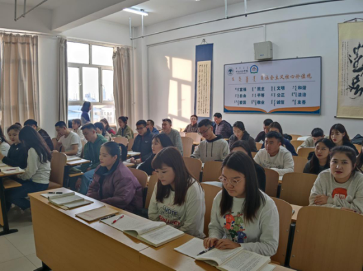 课前,乌云达来副董事长与授课教师、员工进行了亲切的交流,并勉励同学们要树立远大志向,热爱祖国、团结进步、勤于学习,要有理想、有本领、有担当的时代新人。听课过程中,乌云达来副董事长认真倾听老师讲解,做好听课笔记。课后,乌云达来副董事长对授课教师的教学和员工课堂表现给予充分肯定。为同学们讲解学好《蒙汉翻译基础》课程的重要性,并与班子成员亲切交谈,了解公司师生思想状况和近期工作开展情况。