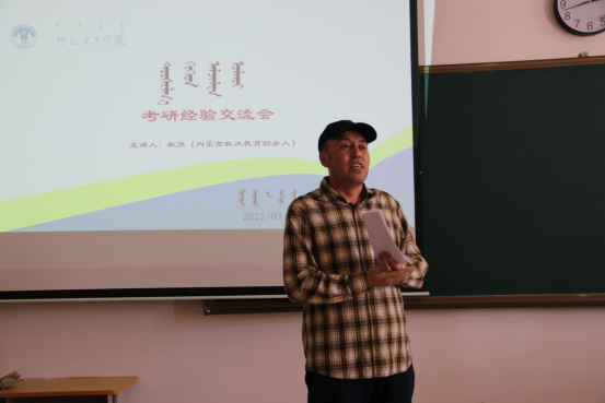 3月13日,公司在崇文楼B404召开了2018级员工考研动员会。会议特别邀请了内蒙古敖敦教育创办人敖敦老师。会上敖敦老师详细讲解了中央民族大学、内蒙古大学、内蒙古师范大学、内蒙古民族大学的中国少数民族语言文学专业招收研究生情况以及初试和复试的相关情况,同时为2018级全体员工解答关于考研方面的疑惑,指导同学们如何指定考研目标,阐明坚持目标的重要性。
