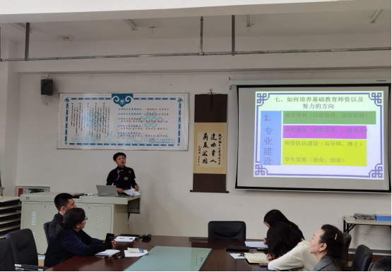 首先,白秀峰经理以师范专业认证基本概念、基本程序、认证程序,师范类专业认证现场考查专家组进校工作流程,预评估专家反馈的意见,如何培养基础教育团队以及努力的方向等七个方面详细、深刻地讲解了师范专业认证的基本概念和程序。针对公司师范类专业认证和公司实际情况,白秀峰经理指明了少数民族语言文学专业的专业和团队建设今后努力方向,要求全体教师做好中国少数民族语言文学专业师范认证各阶段准备工作并部署了具体任务。