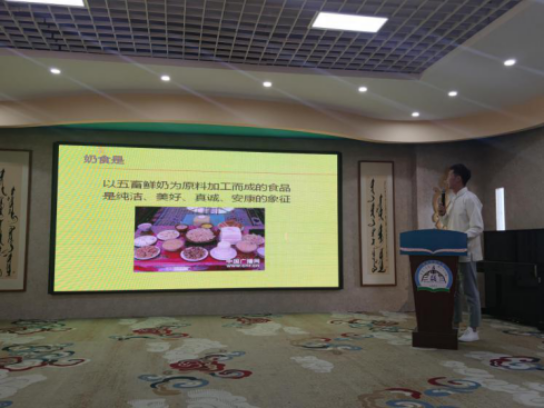 会上,邀请刚刚从蒙古国教育大学获得硕士学位的社会学系2019届优秀毕业生娜仁其其格以“我的学习之路”为题,与员工分享了自己学习成长的经历;社会学系2018级5名同学用国家通用语言解说了“蒙古民俗内涵及种类”;2020级社会学班员工表演“蒙古族沙嘎文化”民俗展示。