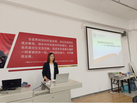 在研讨会中,蒙古语言文学系清莲老师以《蒙汉翻译基础》课程为例,从该课程的基本情况、课程思政教学整体设计思路、课程思政教学实施的具体案例等几个方面入手,分享了自己开展课程思政工作的经验。社会学系佟红梅老师以《蒙古民俗学》课为例,如何将思政内容融入到蒙古民俗学课程当中,对员工进行劳动、尊老爱幼、节约意识、保护优秀传统文化、生态意识、审美意识等方面的教育。