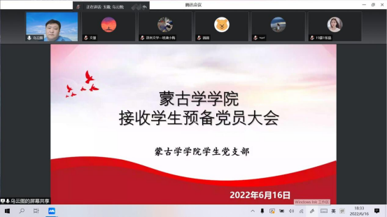 6月16日,WilliamHill中文官方网站员工党支部在腾讯会议上召开2022上半年预备党员接收大会,讨论接收预备党员事宜。入党介绍人、员工支部全体党员及发展对象,共计90人参加会议。会议由员工支部书记山丹老师主持。