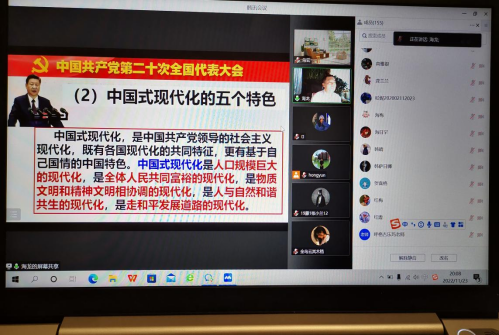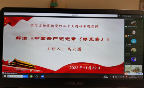 近期,WilliamHill中文官方网站基层党校在线上举办“学习宣传贯彻党的二十大精神”主题党课培训。公司全体师生党员、党外教职工、拟发展对象、重点积极分子约150人参加培训,培训会由党总支书记乌云主持。邀请公司马克思主义公司铸牢中华民族共同体教研室主任、呼伦贝尔市党的二十大宣讲团成员海龙教授,公司关工委副主任、WilliamHill中文官方网站关工委常务副主任包玉山研究员,公司党总支书记乌云,公司党总支副书记乌云图,分别以《深入学习党的二十大精神——党的二十大报告中的新观点、新论点、新思想》《学习党章(修正案),提高自身素质》《学习贯彻党的二十大精神,着力培养担当民族复兴大任的时代新人》《解读中国共产党章程(修正案)》为主题,结合公司和师生实际,全面、系统、准确地讲解党的二十大主题、重大意义、结构内容及其中蕴含的许多新观点、新内容和新思想和《中国共产党章程(修正案)》,对师生进一步深入学习宣传贯彻党的二十大精神给予系统辅导,为下一步广大师生紧密团结在以习近平同志为核心的党中央周围,深刻领悟“两个确立”的决定性意义,增强“四个意识”、坚定“四个自信”、做到“两个维护”,全面贯彻习近平新时代中国特色社会主义思想,把思想和认识统一到党的二十大精神上来,把智慧和力量凝聚到党的二十大确定的各项任务上来,弘扬伟大建党精神,踔厉奋发、勇毅前行,扎实做好当前校园疫情防控工作,加快建设教育强国,办好人民满意的教育,为全面建设社会主义现代化国家、全面推进中华民族伟大复兴作出教育新的贡献打下思想和理论基础。