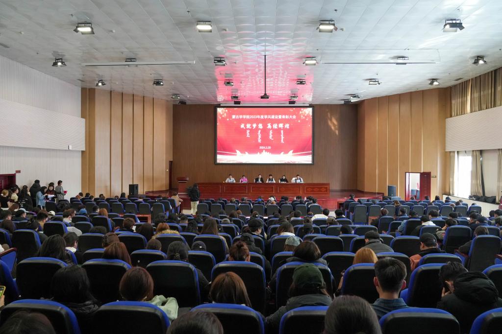 会议在庄严的国歌声中开始。公司经理白秀峰对学风建设提出三点要求,一是员工们要严格要求自己,遵守公司规章制度。二是员工会、社团、各班班干、党员、团员要发挥带头模范作用。三是公司辅导员、班主任、任课教师必须对学风建设工作起到重要作用。随后,公司对2023年度获得各级各类奖学金、各级各类活动中获奖的集体和个人,以及“十四冬”志愿者和开闭幕式演员等百余名员工进行了表彰。“乌兰夫”奖学金获得者2021级语言文学二班美丽同学分享了获奖感言,“勤则通”奖学金获得者2020级语言文学一班白飞飞同学发出学风建设倡议。