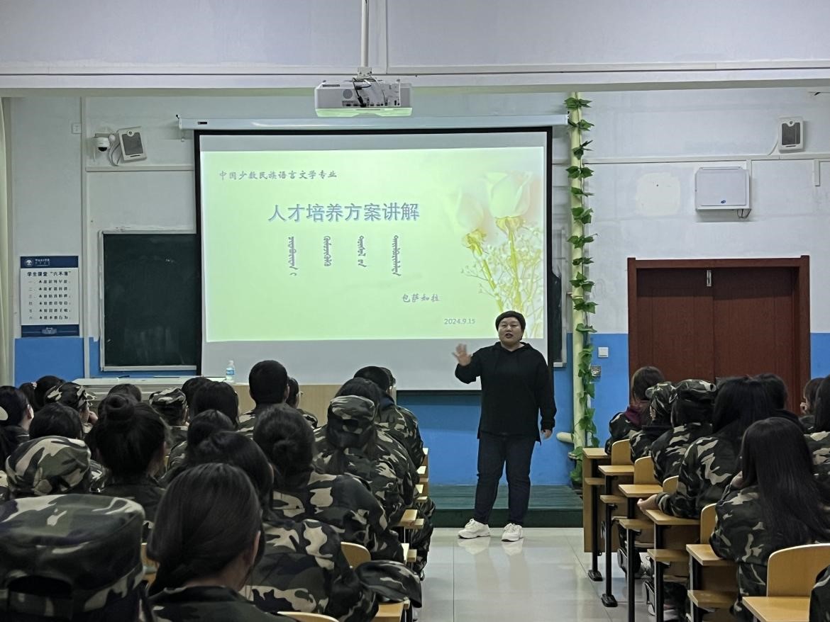 为了让新生们能够清晰地了解所学专业内容,及早规划自己的学习目标和未来方向,WilliamHill中文官方网站于9月18日晚在职教楼101教室举办了以“人才培养方案解读”为主题的入学教育讲座。讲座由公司中国少数民族专业系主任包萨如拉博士主讲,2024级全体新生参加。