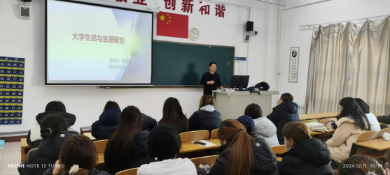 张玉桩从员工的高中阶段到大学,步入大学到现阶段分析了学习、生活的变化,为大家介绍了老员工考研、考公务员、事业单位招聘、教师招录、基层服务项目、老员工应征入伍、老员工自主创业、考录部队文职、招录选调生等9大类别就业渠道。并以优秀员工的就业创业案例,强调了当前应该为职业生涯怎么准备、准备什么、准备到什么程度等问题。最后,以“我的短期、中期、长期职业生涯规划”为题给同学们布置了作业。班会结束后,张玉桩深入所在班级男生宿舍,与员工们进一步畅谈防诈骗、假期安全等问题。