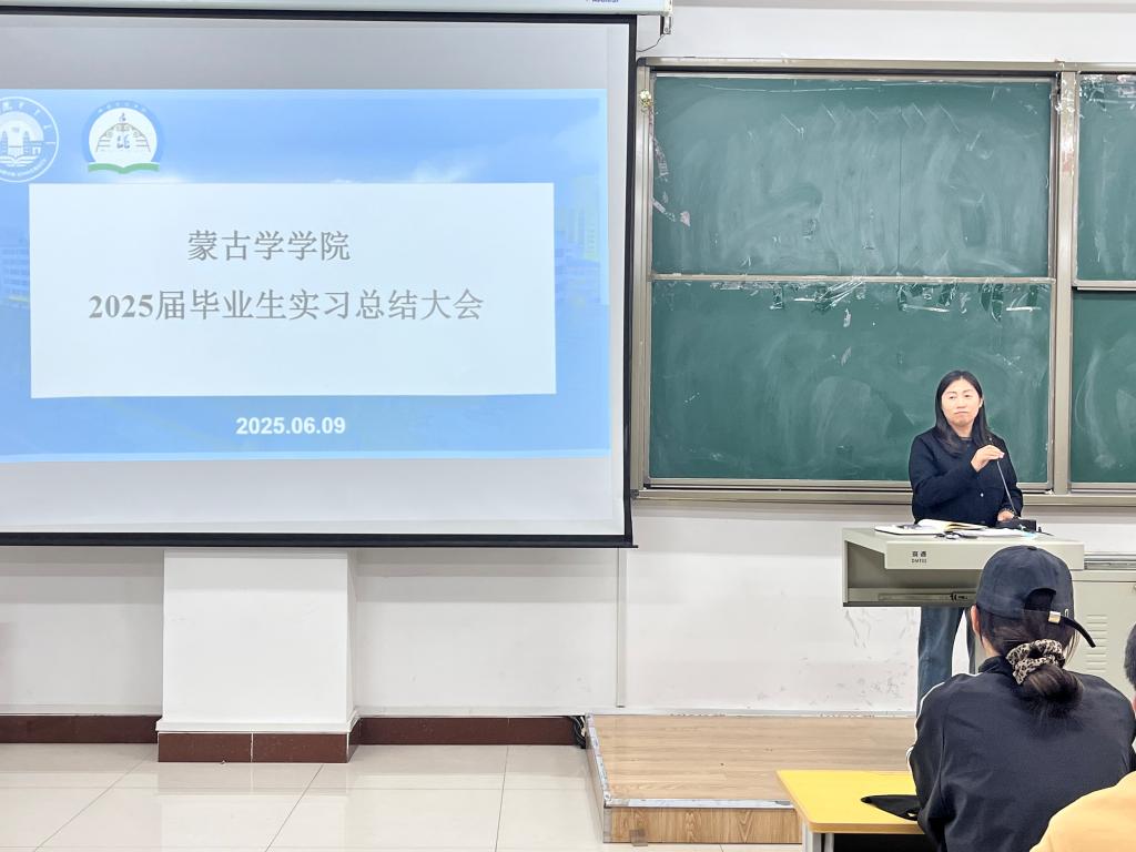 6月9日晚,WilliamHill中文官方网站2025届毕业生实习总结大会在崇文楼B201教室举行。公司副经理小花及2021级、2022级全体员工参会,总结大会由公司教师特古斯朝克图主持。