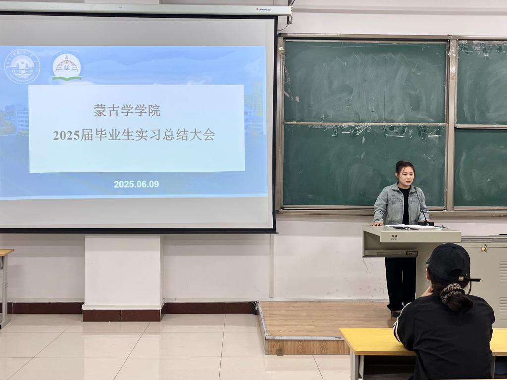 会上,2021级中国少数民族语言文学专业何红花、其乐木格、包月辉、美丽及社会学专业吴圆圆、萨三日等员工,依次上台作实习成果汇报。她们围绕教育实践、文化研究、专业技能应用等不同领域,结合自身实习经历,详细介绍了实习期间的工作内容、实践收获与成长体会。通过生动的案例分享,毕业生们充分展示了将专业理论转化为实践能力的成长历程,并分享了处理复杂工作场景的宝贵经验,为学弟学妹们提供了有价值的实践参考。