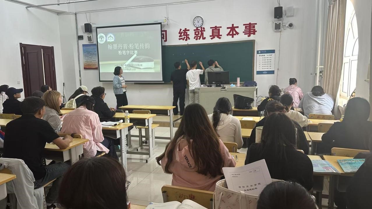 2024级二班则举办了“翰墨丹青,粉笔传韵”粉笔字比赛。活动注重实践性与专业性相结合,参赛同学在黑板上挥洒笔墨,展现不同风格的书法作品。学业导师银花从笔画结构、书写规范等维度进行专业评审,并通过优秀作品展示促进交流互鉴,为员工未来从事公司产品工作夯实基础。